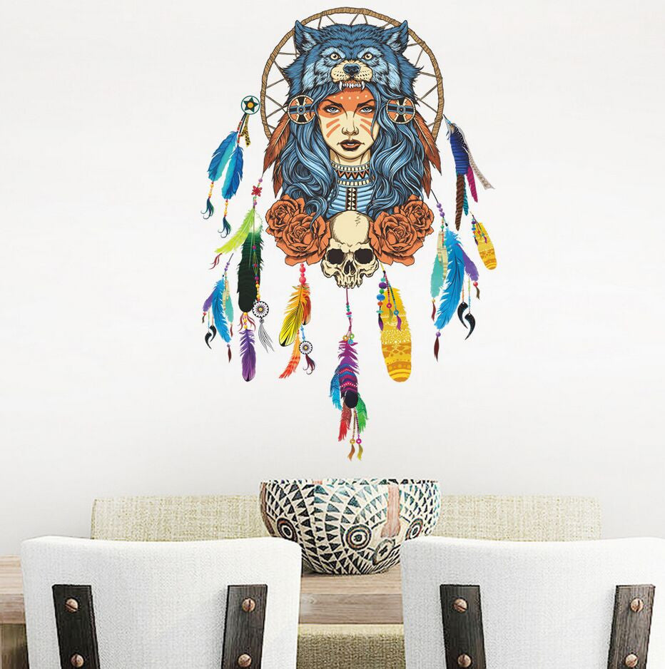 Indian Wolf Headdress Full Color Girl Wall Stickers Wall Decorative Creative Removable Wall Stickers