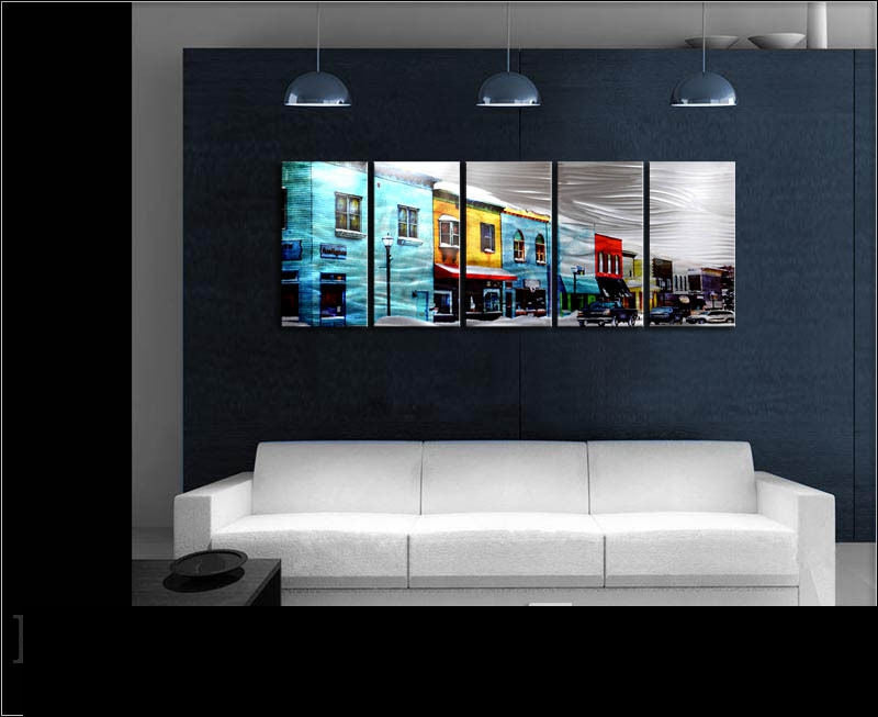 Metal Art Abstract Special Cityscape / Town Painting Sculpture Original Modern Metal Wall Indoor Outdoor Decor