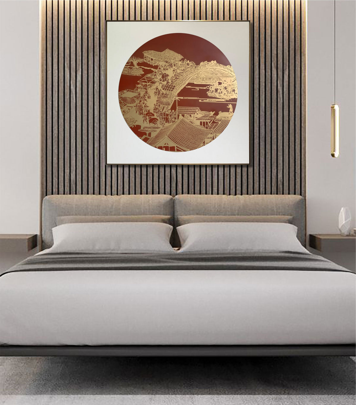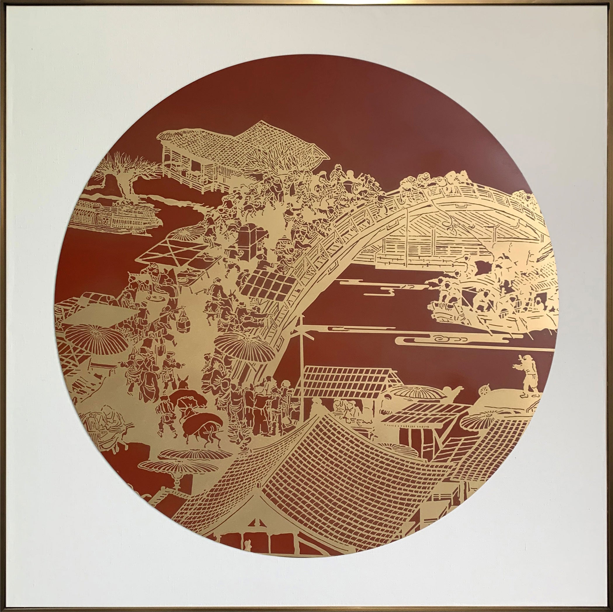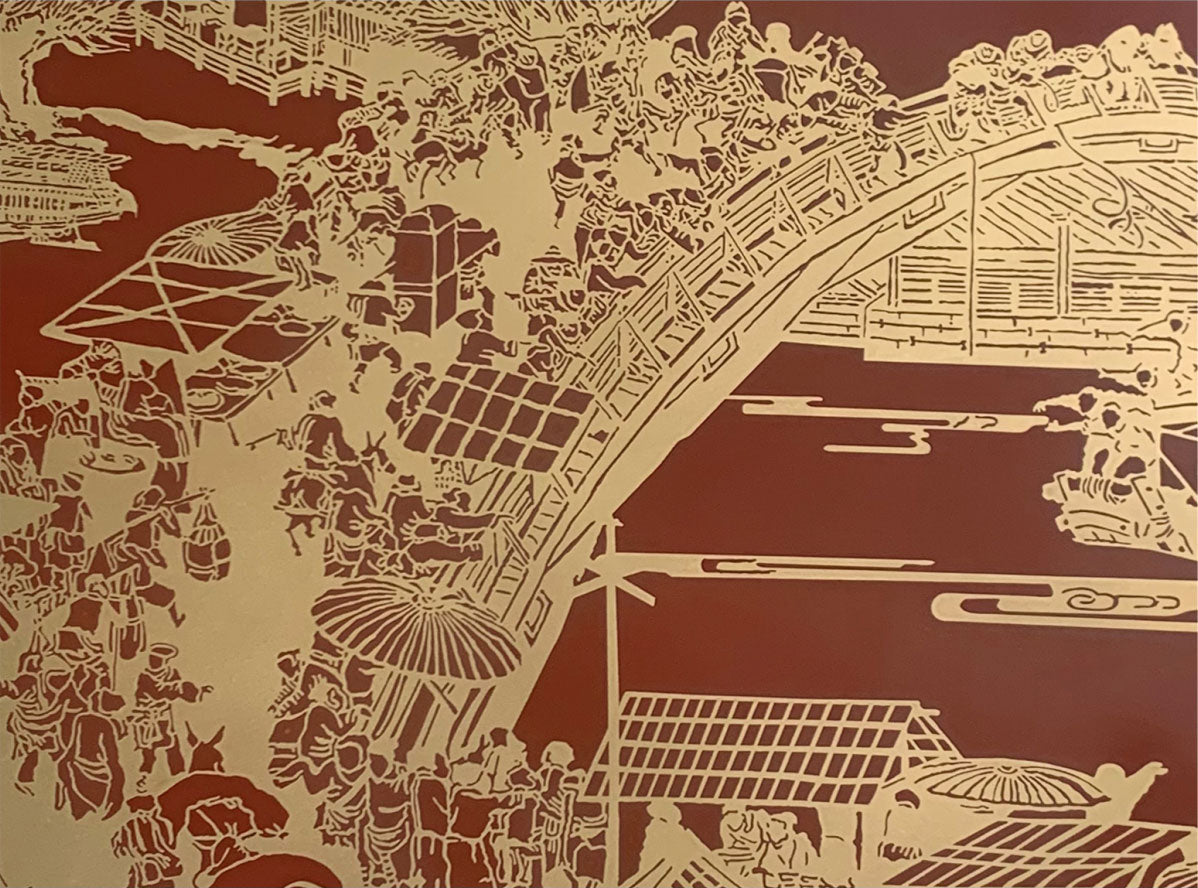 Along the River During the Qingming Festival, Detailed, Brass Plate Etching Art Wall Decor