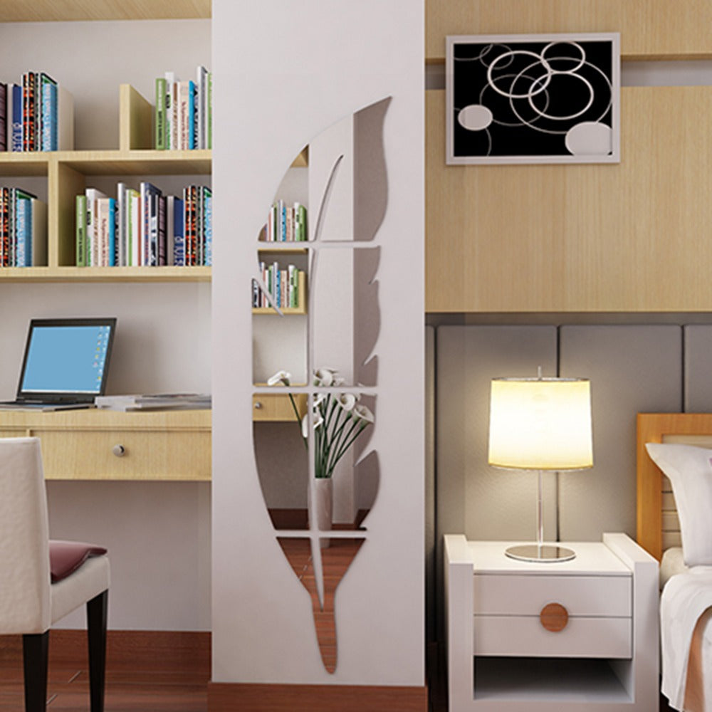 1Pc Feather Dressing Mirror DIY Wall Stickers Acrylic Stickers Bathroom Decor Living Room Bedroom Bathroom Decoration