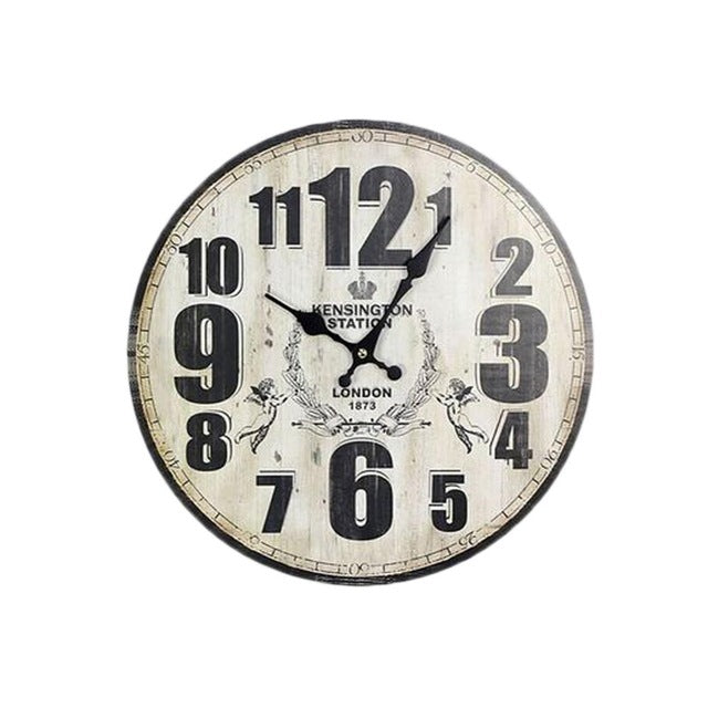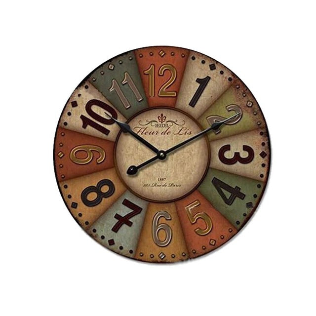Round Vintage Paris Creative Wood Wall Clock, Colorful French Country Tuscan Style