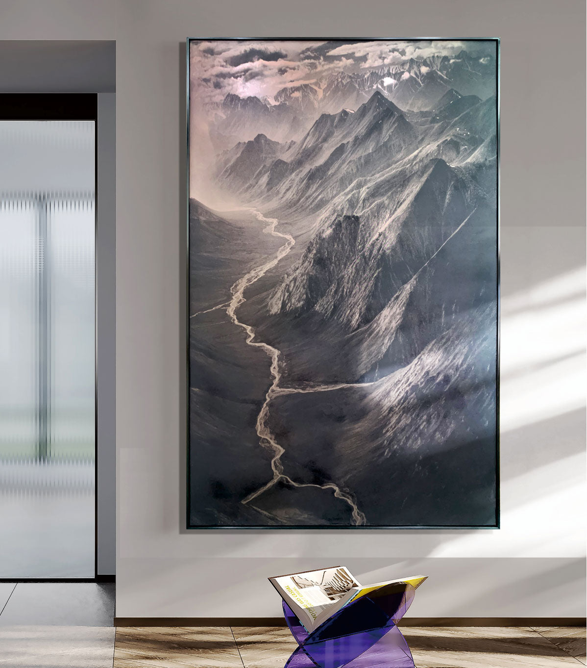 Rivers and Mountains, Brass Plate Etching Art Wall Decor