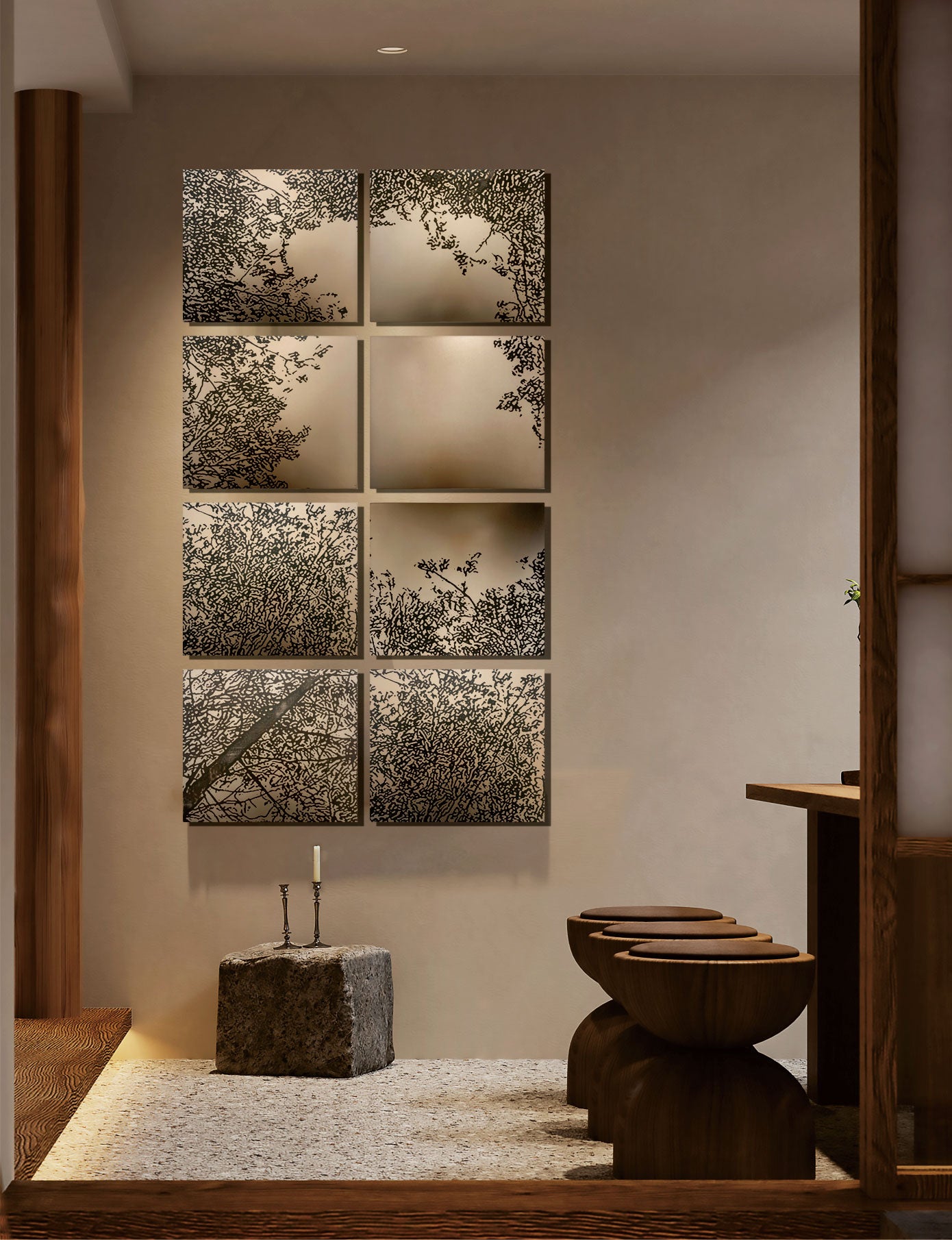Modern Decor, Brass Plate Etching Art Wall Decor