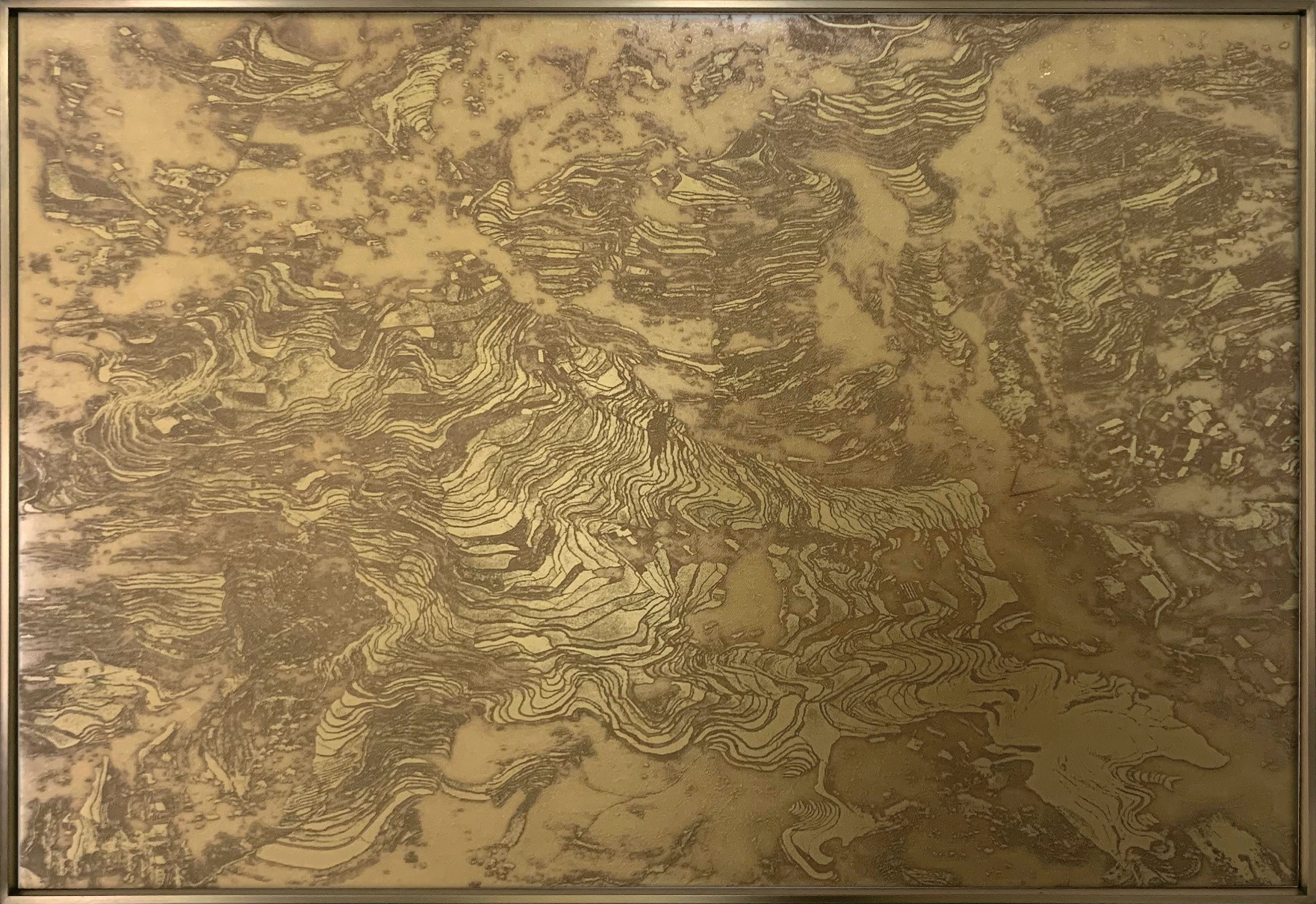 Terraced Fields II, Brass Plate Etching Art Wall Decor