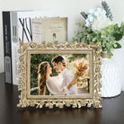 Wedding Picture Frame, 2 Pack Antique Gold Decorative Frames for Tabletop or Wall Display, Brass Rose Flower Texture Photo Frame for Home Living Room Bedroom Decor