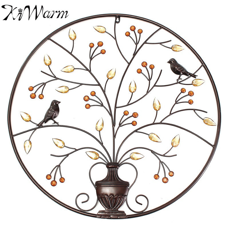 KiWarm Black Birds Tree Metal Iron Sculpture Ornament for Home Room Wall Hanging Decoration Art Crafts Gift 62cm/24.4inch