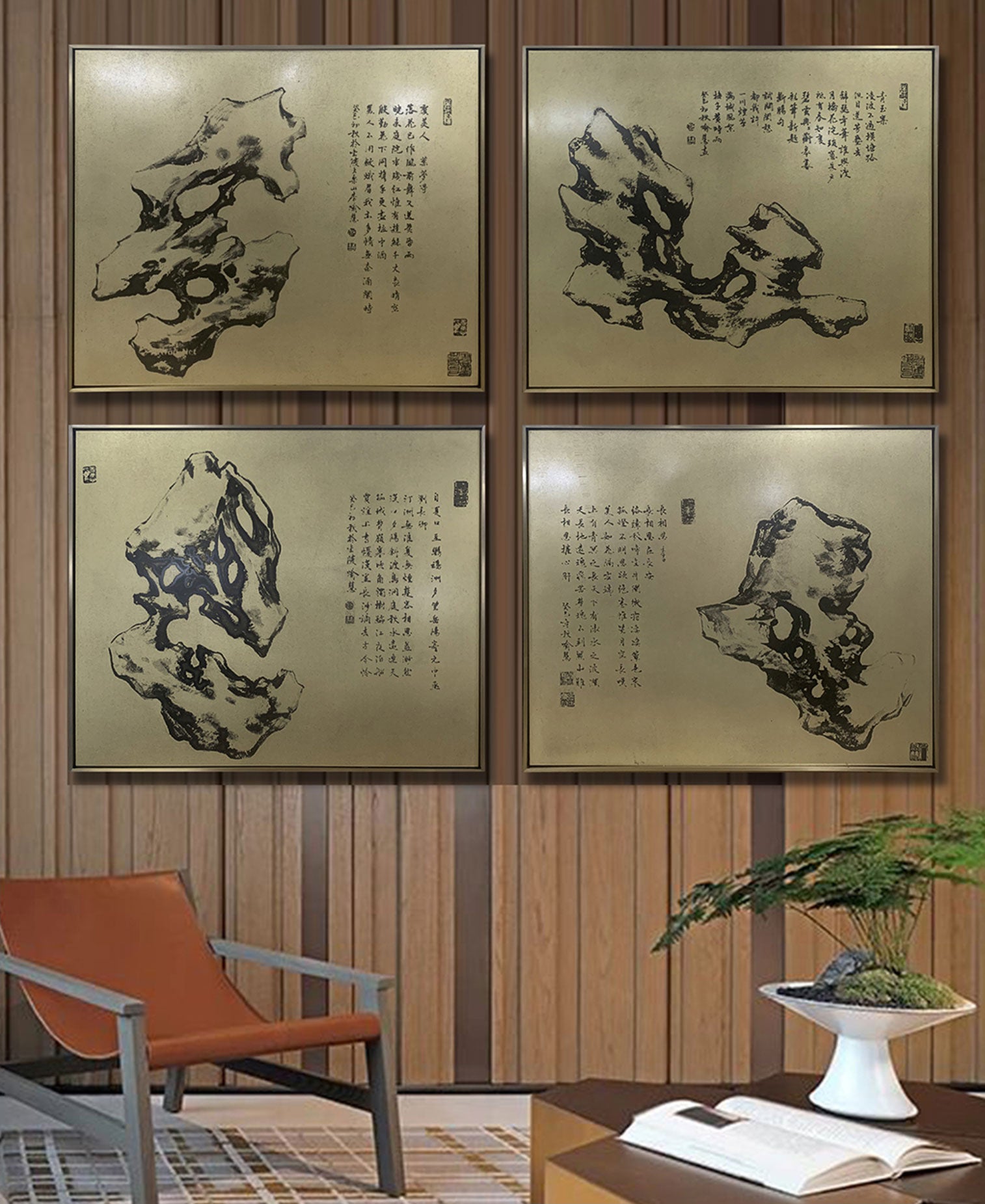 Taihu Stone Series II, Brass Plate Etching Art Wall Decor