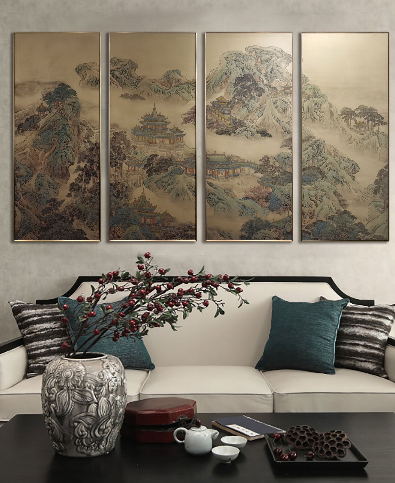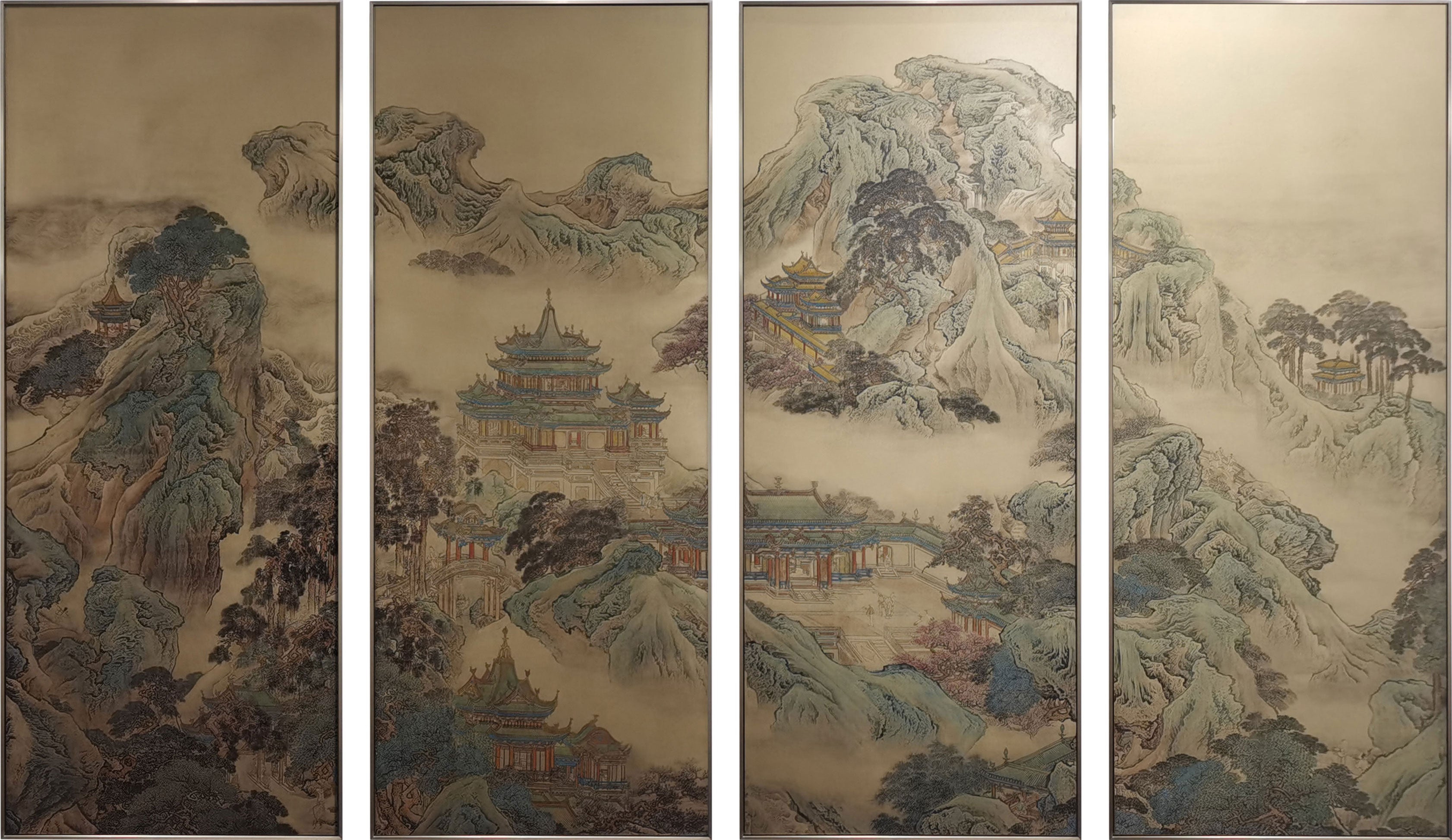 One Thousand Li of Rivers and Mountains, Detailed, Brass Plate Etching Art Wall Decor