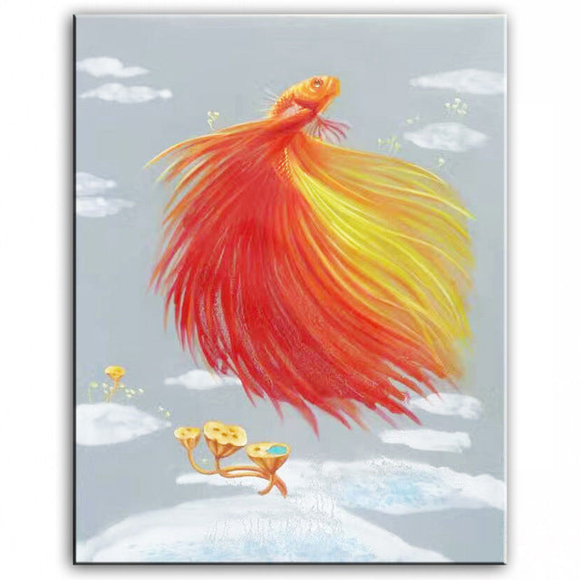 Original oil painting Dancing goldfish painter original paintings decoration painting Custom-made oil painting 16110716