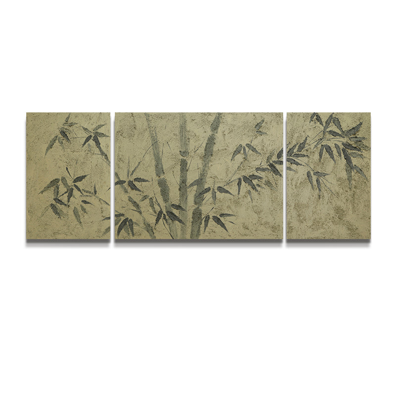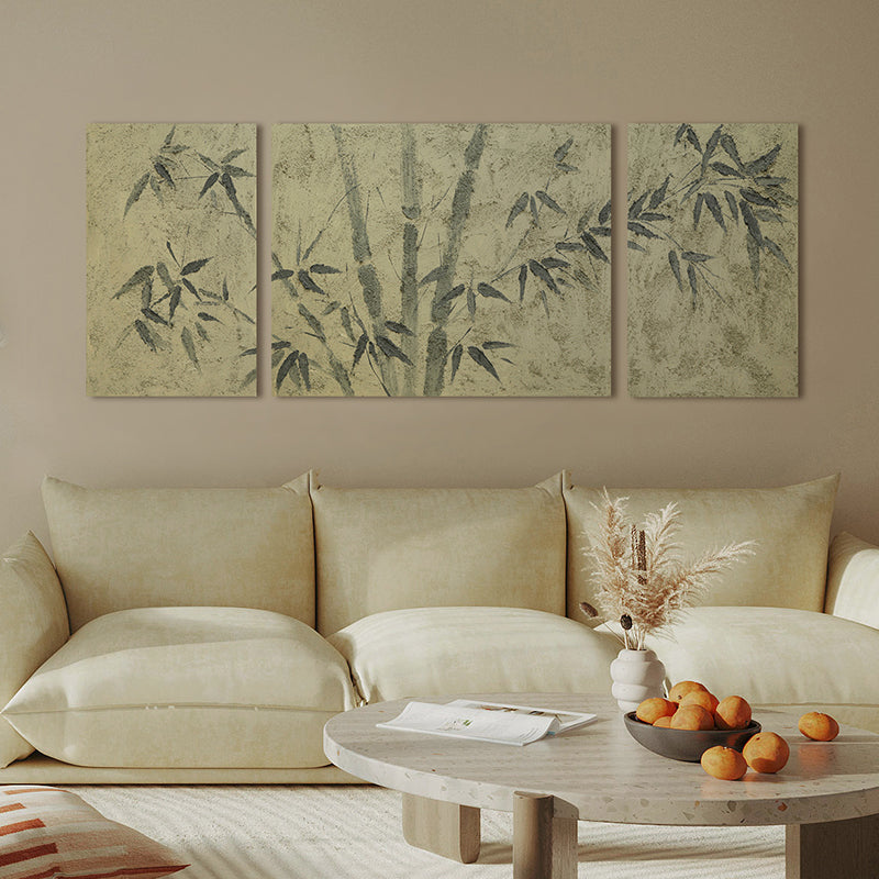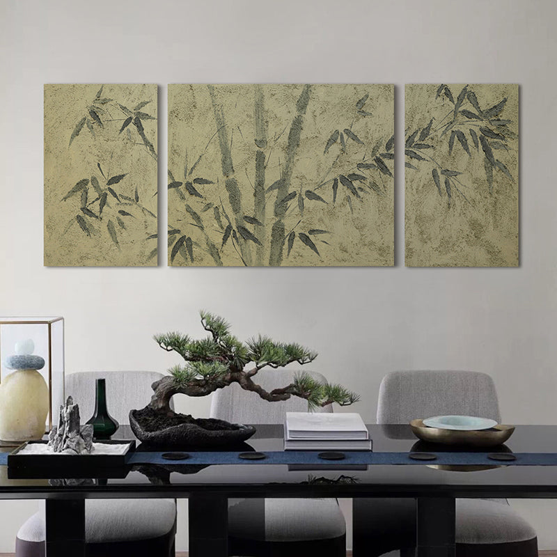 Bamboos Near the River, Original Triptych Painting by Hand, Acrylic on Canvas, Modern Art Decor
