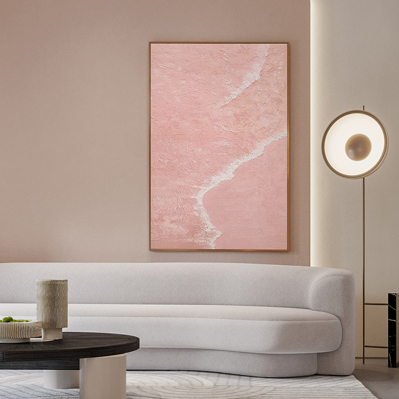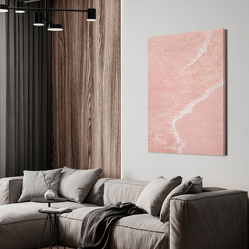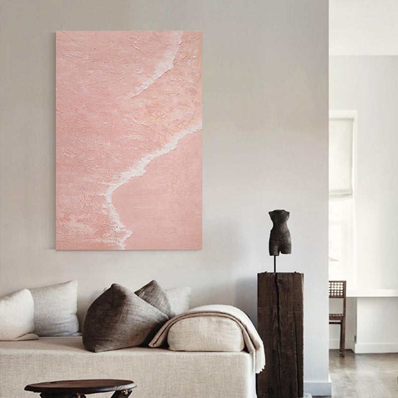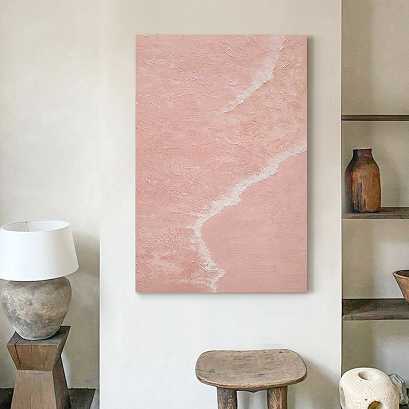 Pink Seashore, Original Hand Painted Mixed Media with Acrylic on Canvas, Wall Decor Art