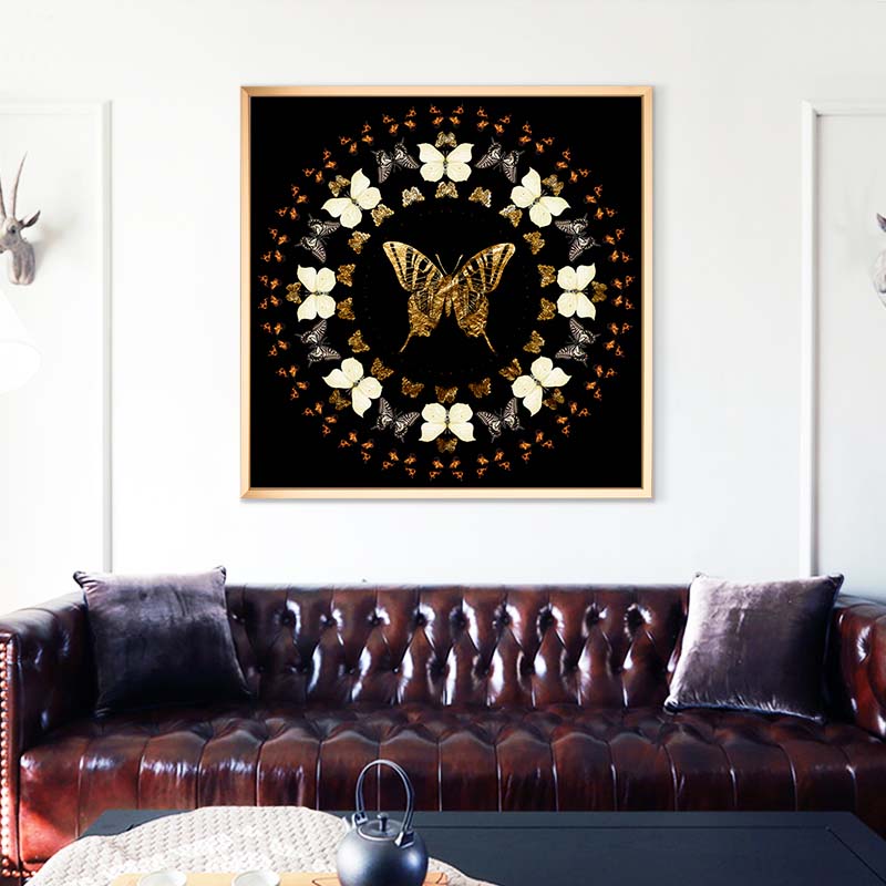 Butterfly Crystal Art Print with Gold Aluminum Floater Frame