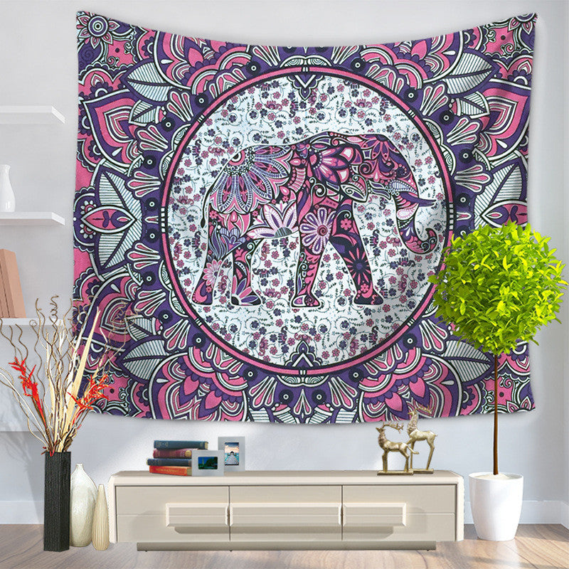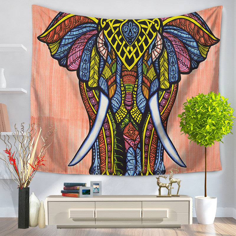 Coloured Drawing Or Pattern Elephant Tapestry Hanging, Sandy Beach A Piece Of Cloth Sit Carpet GT1003