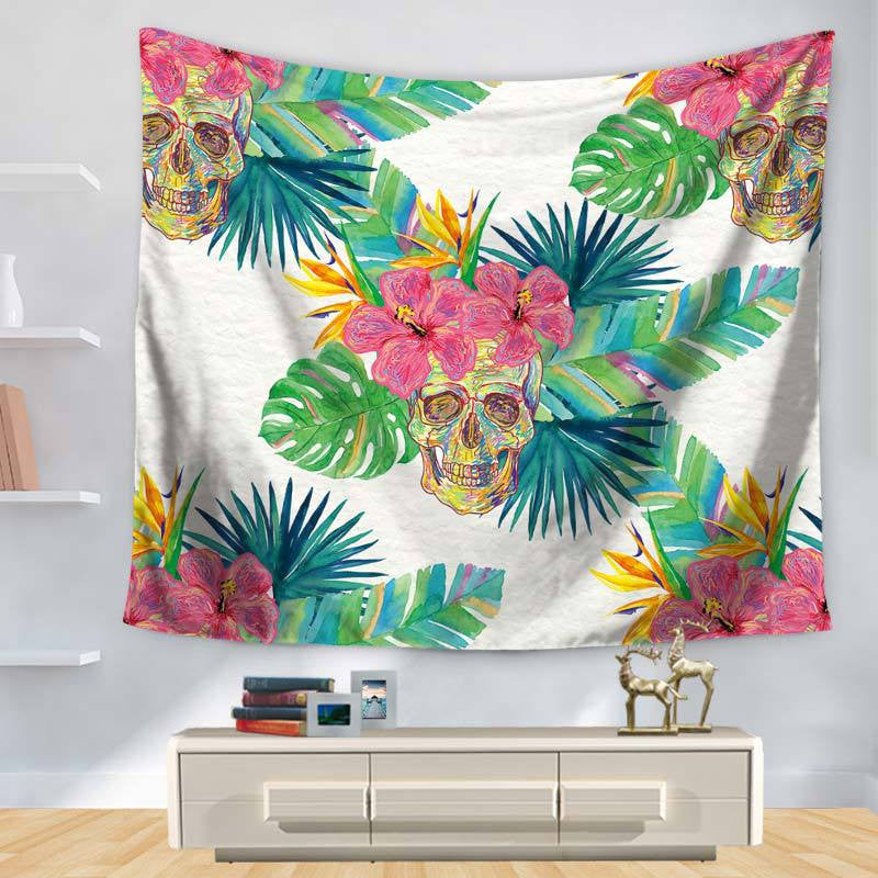 Pattern Tropic Botany Human Skeleton Head Printing Hanging, Decoration Sandy Beach Sit Carpet gt1130