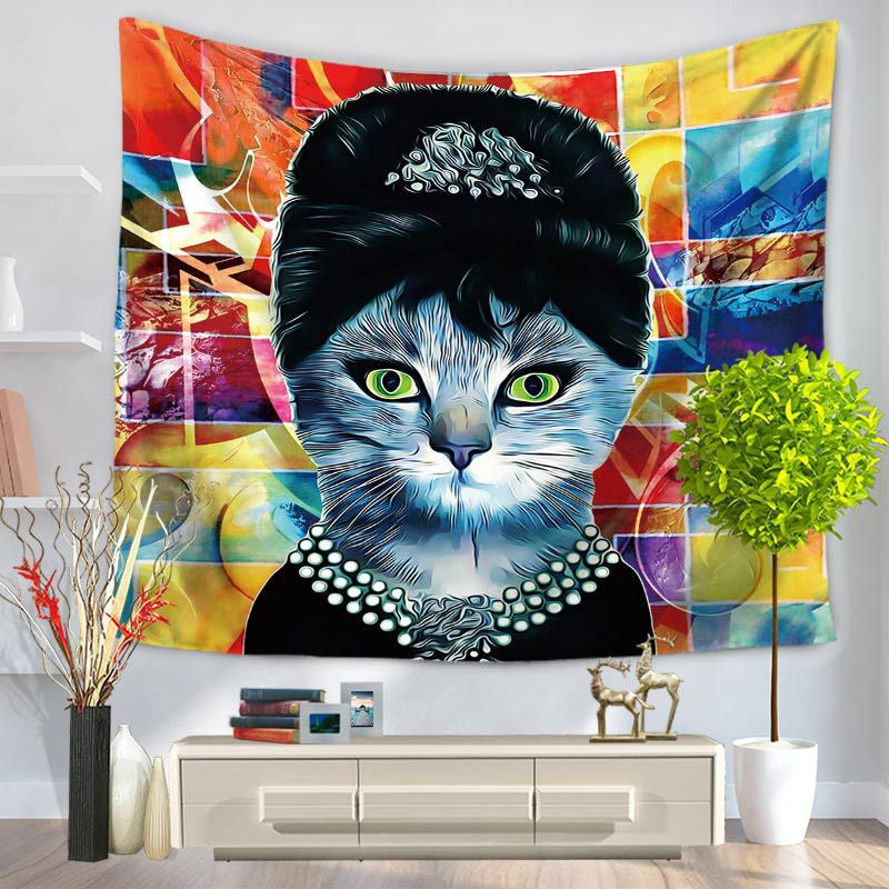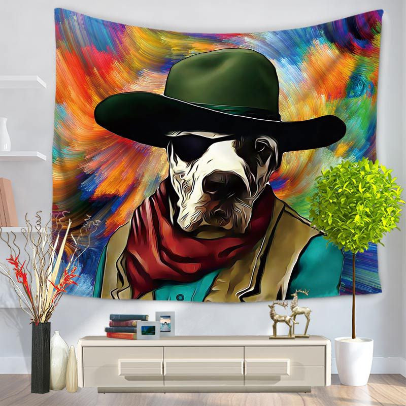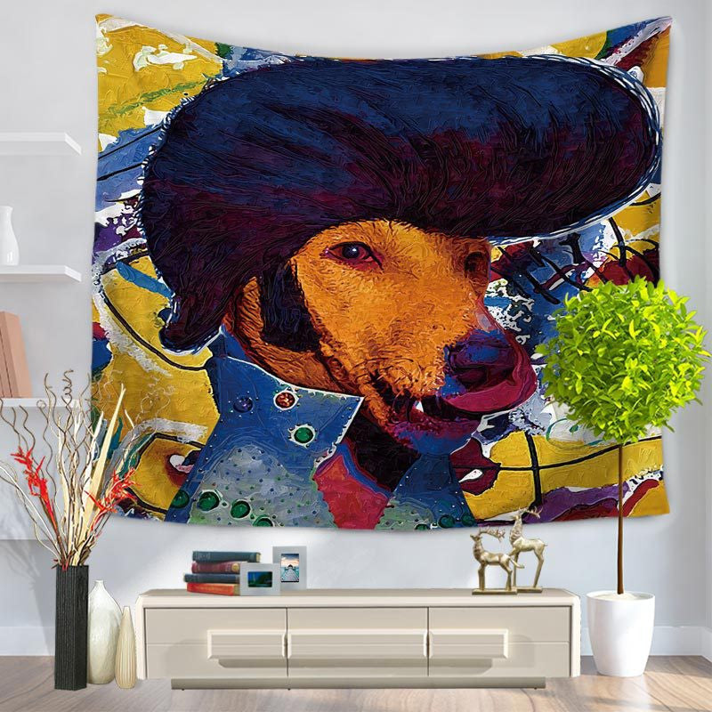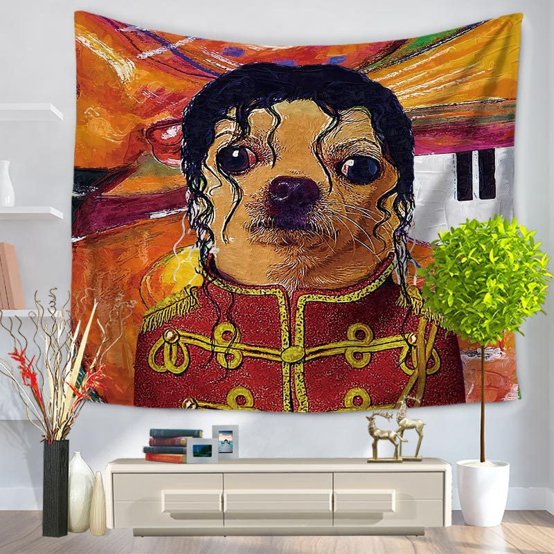 Animal Star Face Tapestry Hanging, Sandy Beach a Piece of Cloth Sit Carpet