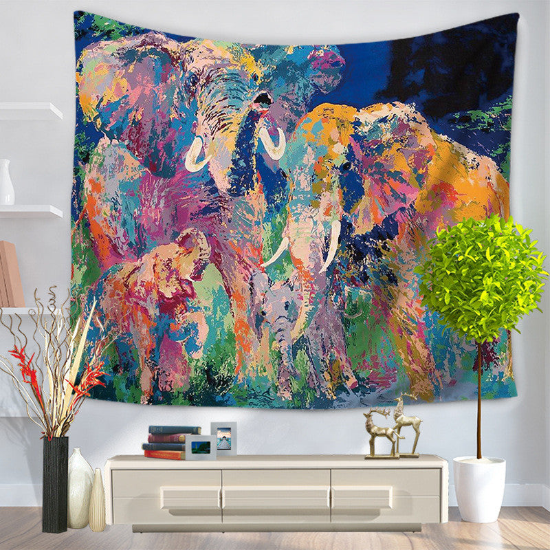 Coloured Drawing Or Pattern Elephant Tapestry Hanging, Sandy Beach A Piece Of Cloth Sit Carpet GT1003