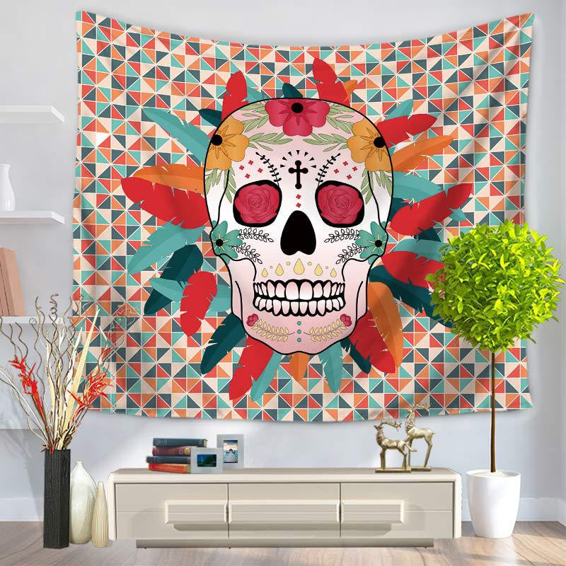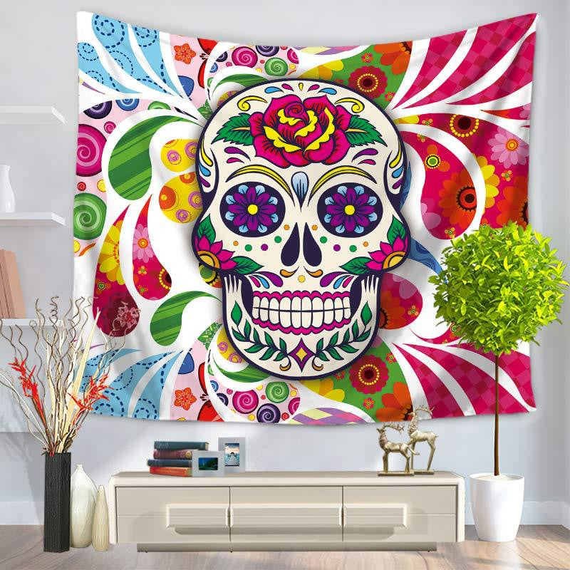 Fancy Human Skeleton Head Tapestry Hanging, Sandy Beach a Piece of Cloth Sit Carpet GT1067