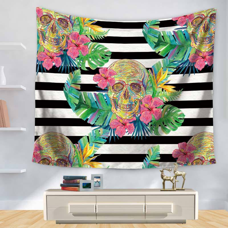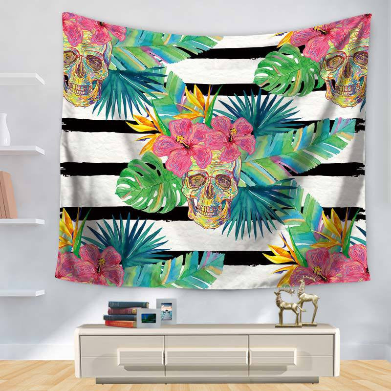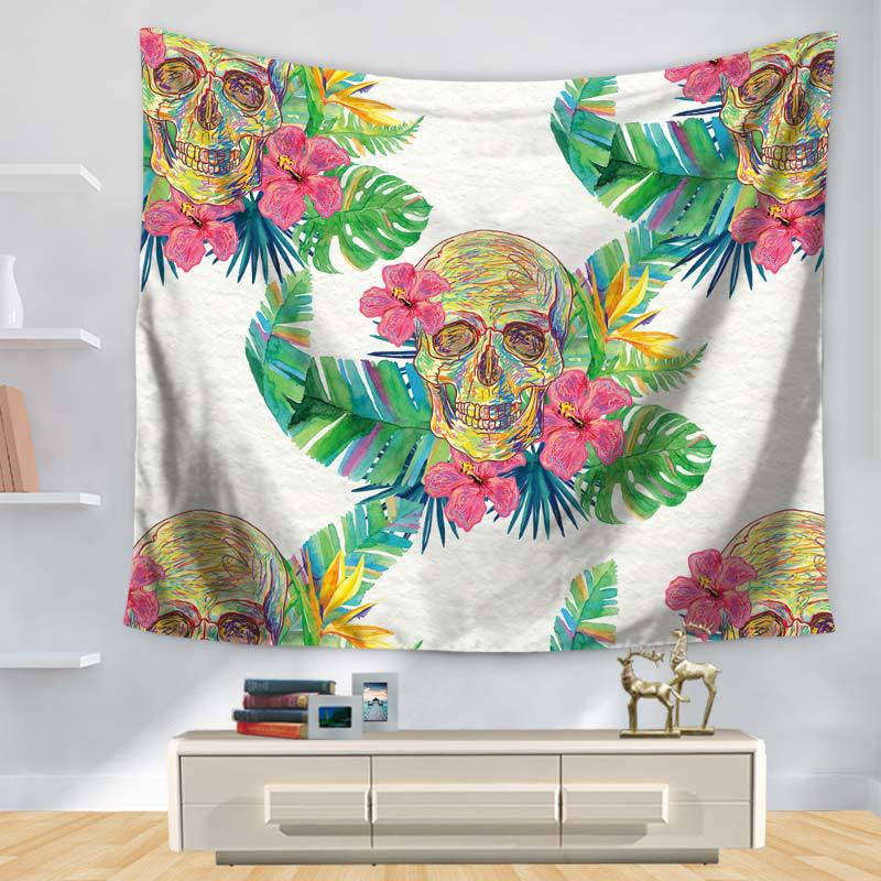 Pattern Tropic Botany Human Skeleton Head Printing Hanging, Decoration Sandy Beach Sit Carpet gt1130