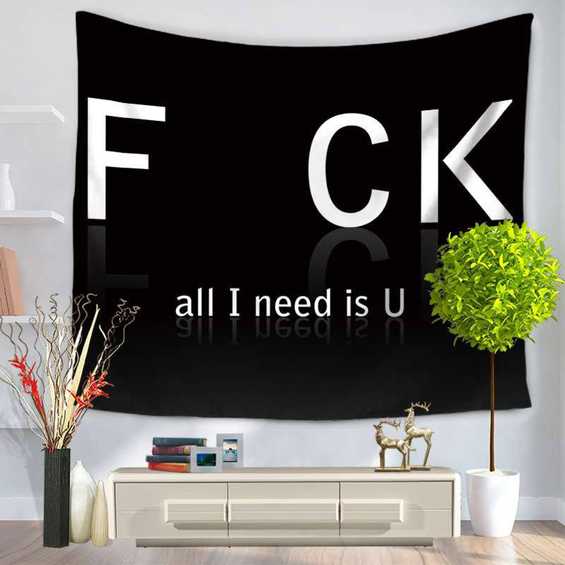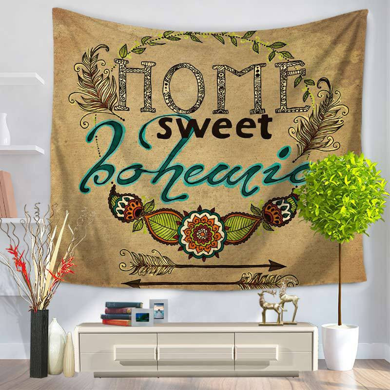 Tapestry English Letter Printing Hanging, Sandy Beach Sit Carpet GT1112