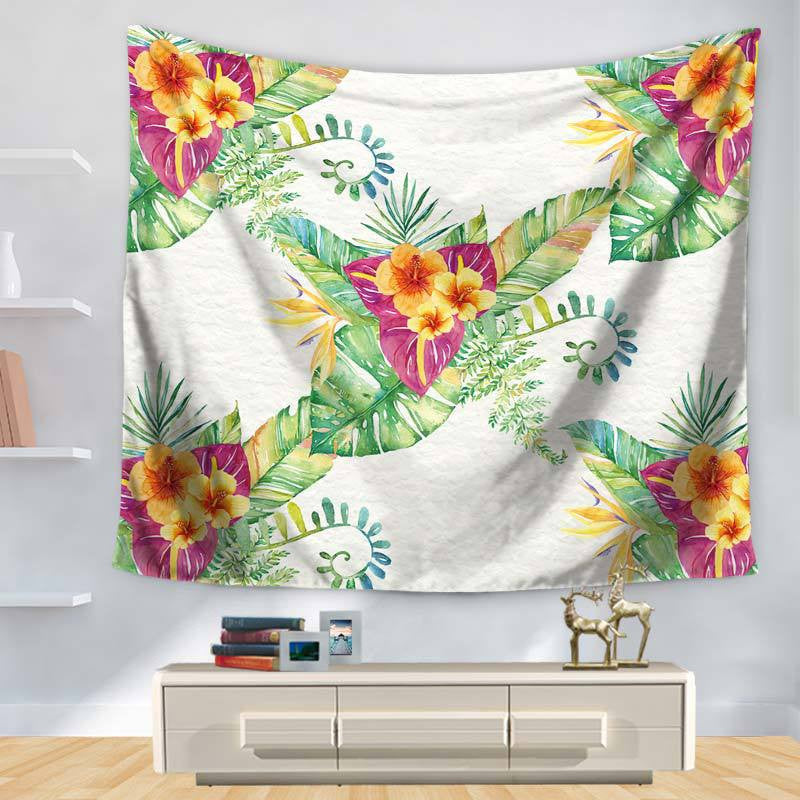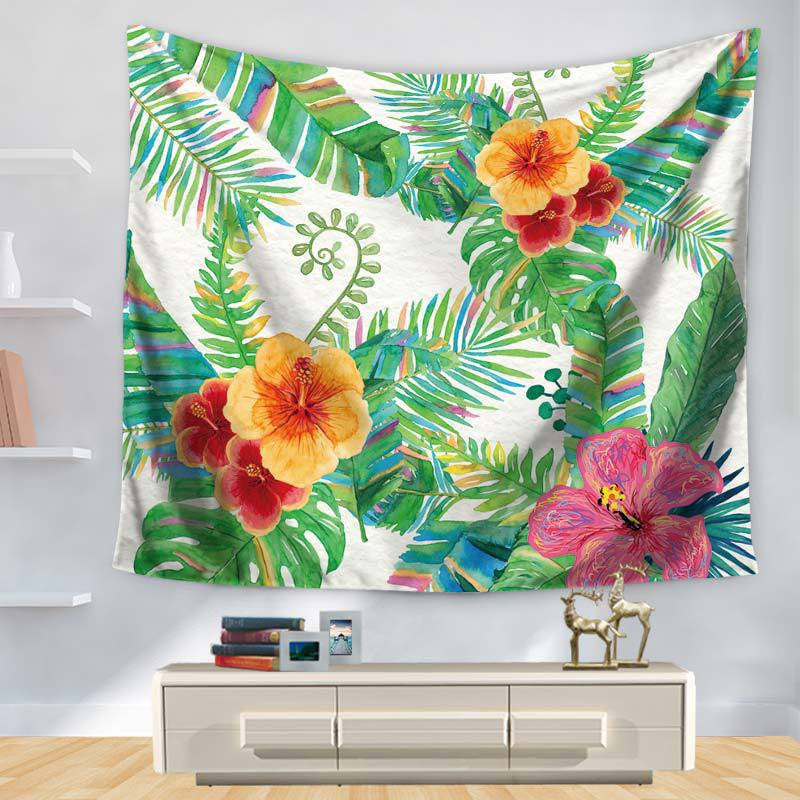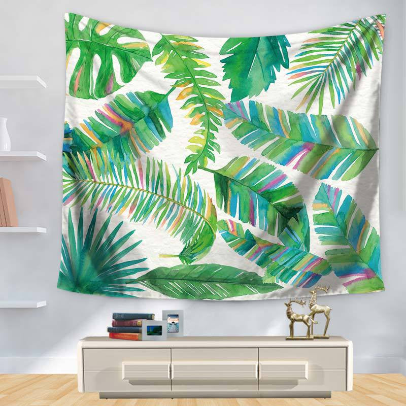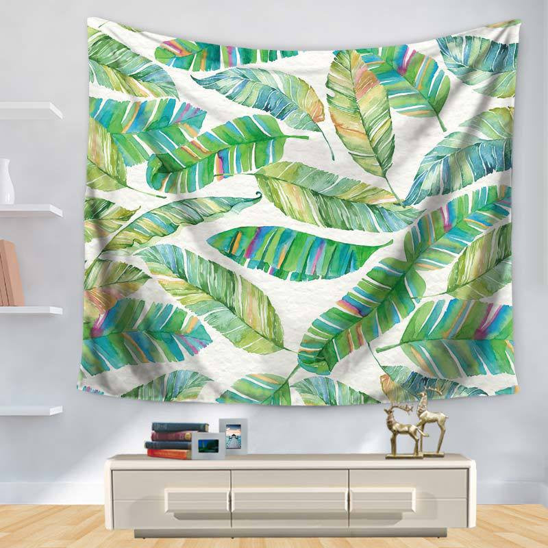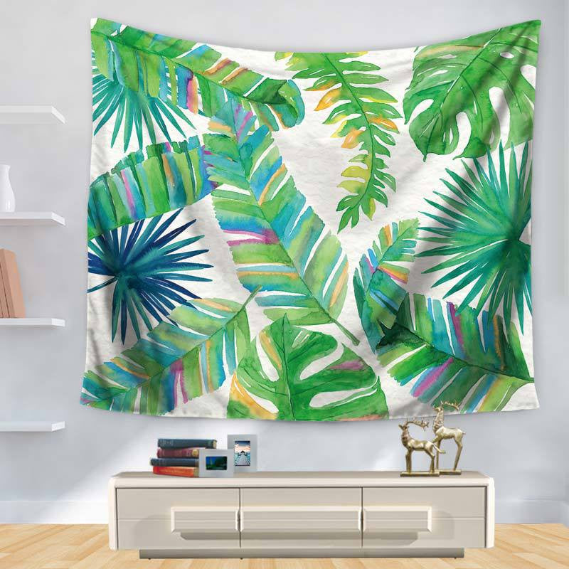 Tapestry Tropic Botany Series Green Leaf Printing Hanging, Decoration Sandy Beach Sit Carpet