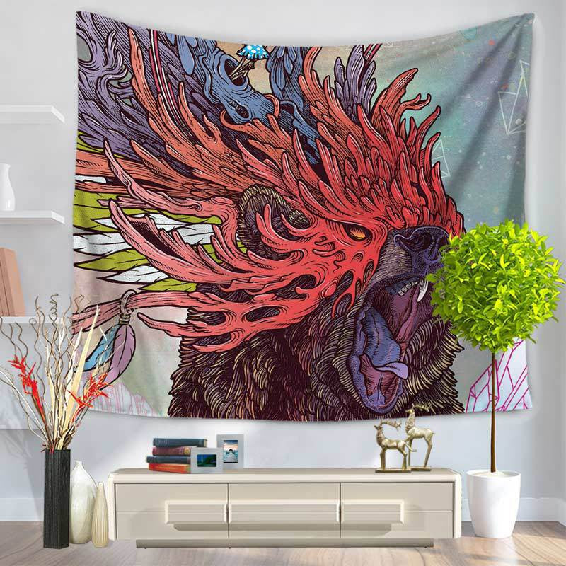 Tapestry Cartoon Comic Originality Animal Printing Hanging, Decoration Sandy Beach Sit Carpet