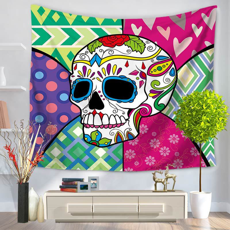 Fancy Human Skeleton Head Tapestry Hanging, Sandy Beach a Piece of Cloth Sit Carpet GT1067