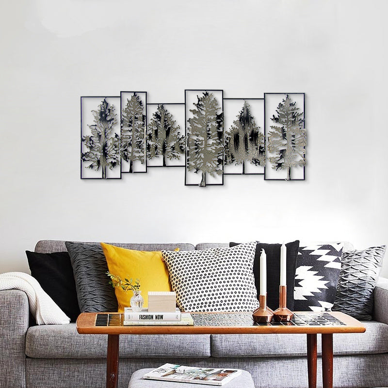 Creative Home Decor Abstract Retro Cedar Forest Wall Sculpture Decoration Xmas Metal Statue TV Background Xmas Gift