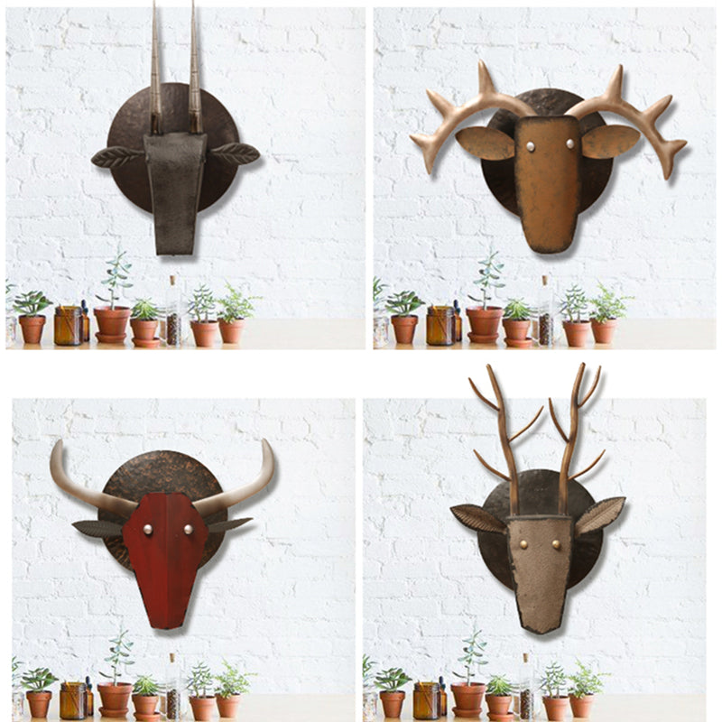Creative Retro Home Wall Decor Abstract Animal Sculpture Bull Deer Goat Decor Figurine Decorative Metal Statue TV Background