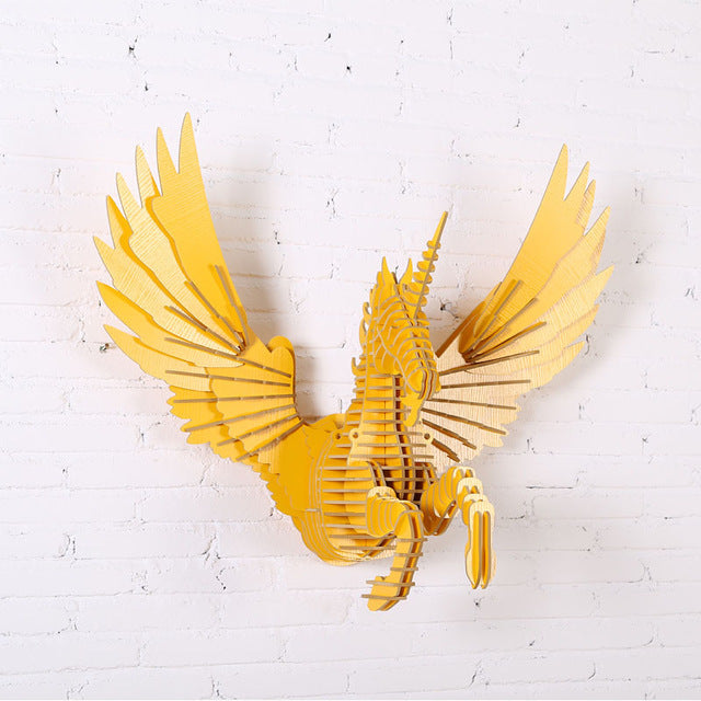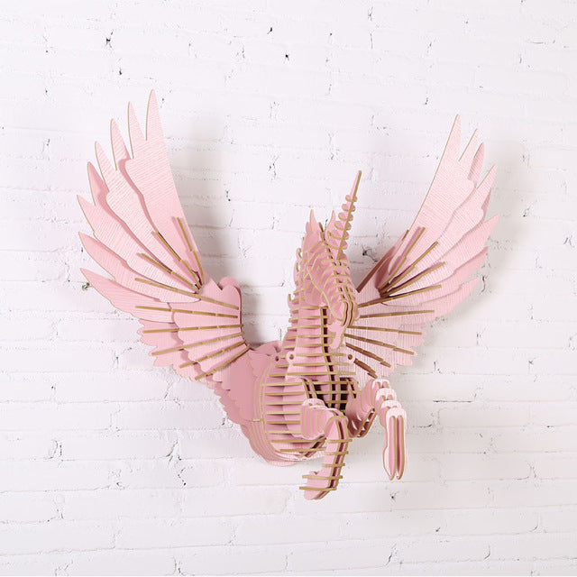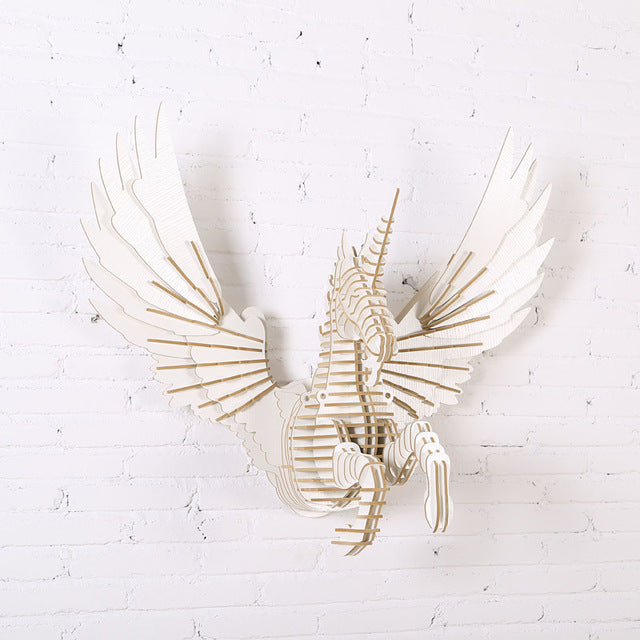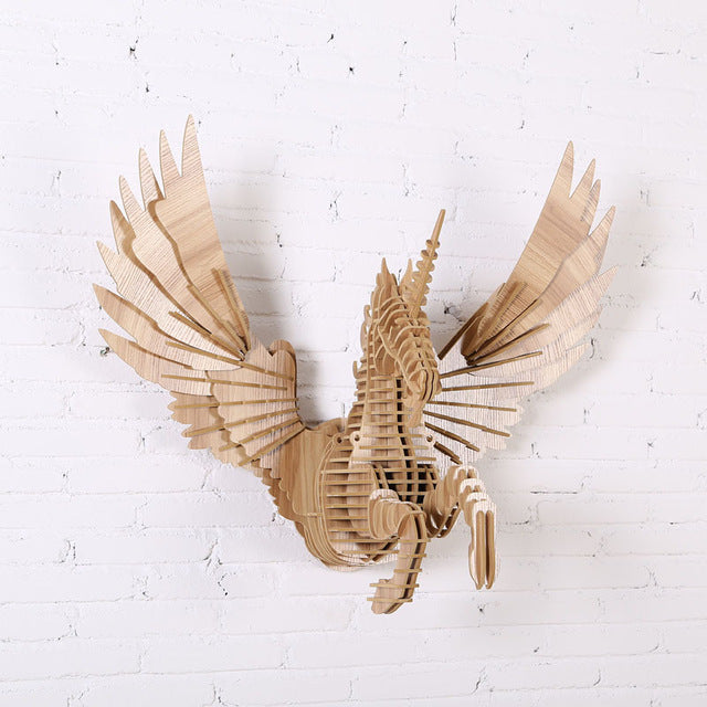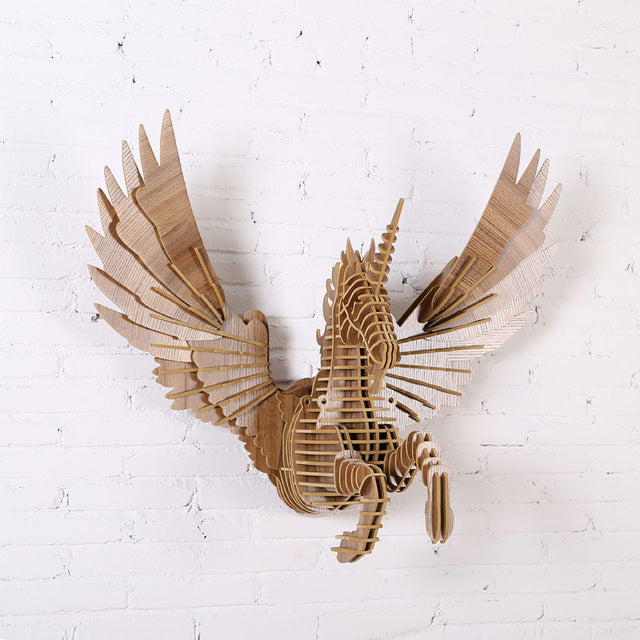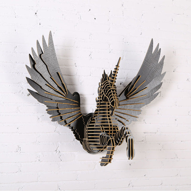 Europe Style FLYING UNICORN Wood Wall Art Sculpture 3D Puzzle Animal Wall Hanging for Wall/Bar/Club WDM021M