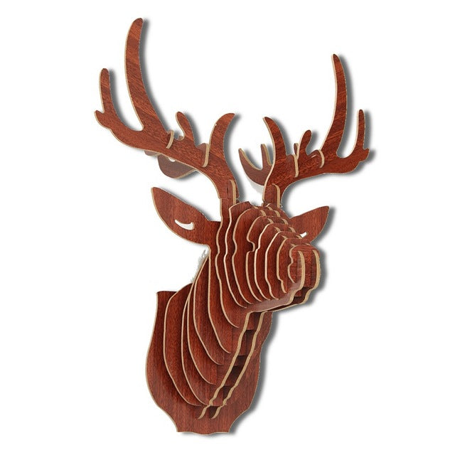 Excellent 3D Puzzle Wooden DIY Model Wall Hanging Deer Head Elk Wood Animal Wildlife Sculpture Figurines Gift Crafts Home Decor