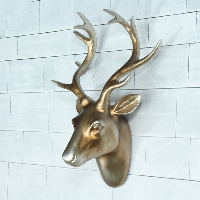 Exquisite Resin Deer Head Elk Antlers Ornament Animal Wildlife Sculpture for Home Christmas Hotel Wall Hanging Decor Gift