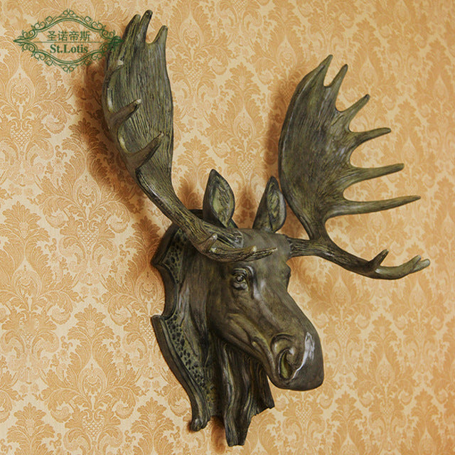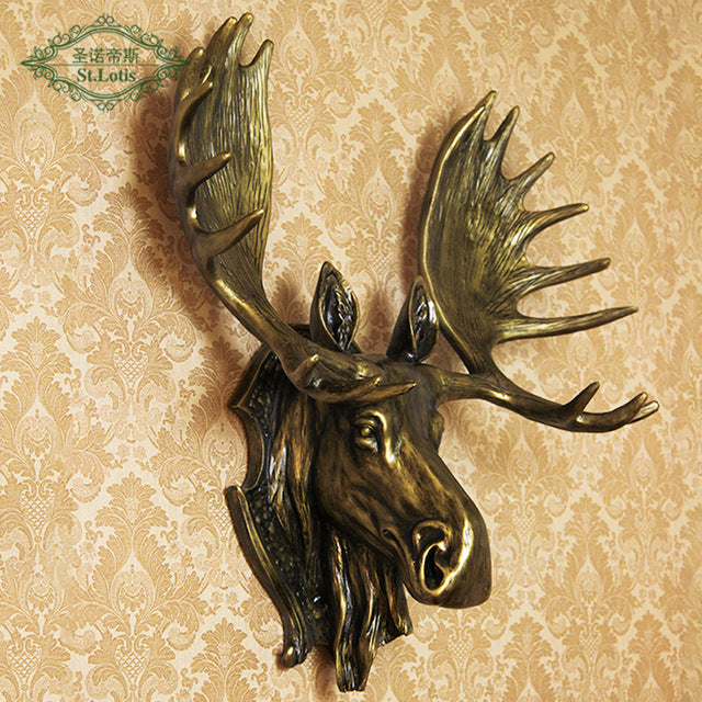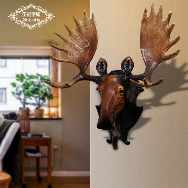 Moose Deer head hanging wall mural animal living room retro ornaments wapiti home decoration accessories statue sculpture hot