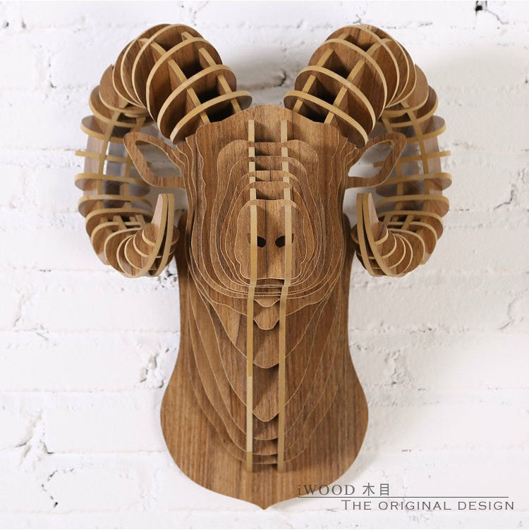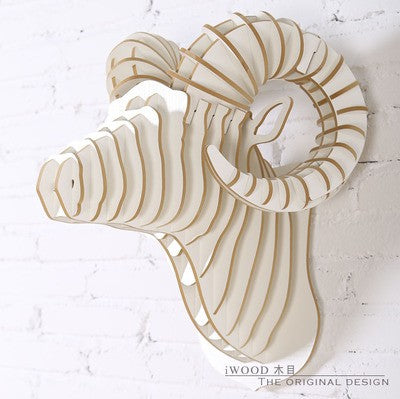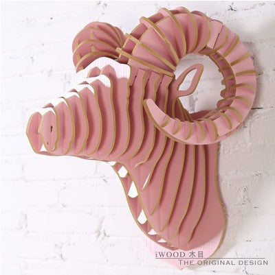 Wall ram,creative sheep home accessories,3D DIY wooden sculpture crafts,restaurant decoration,animal head ornaments,decor art