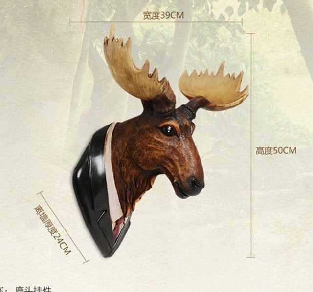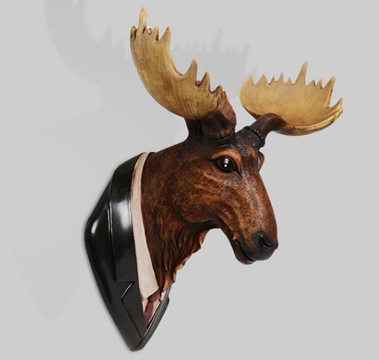 Moose Deer head hanging wall mural animal living room retro ornaments wapiti home decoration accessories statue sculpture hot