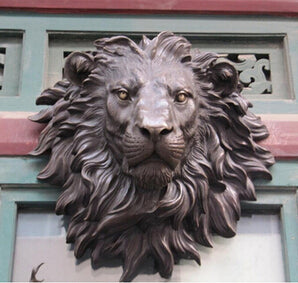 Copper Brass CHINESE crafts Asian Marked The huge Lion head flat brass sculpture statue The art hanging wall