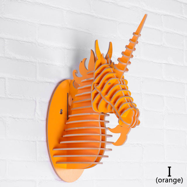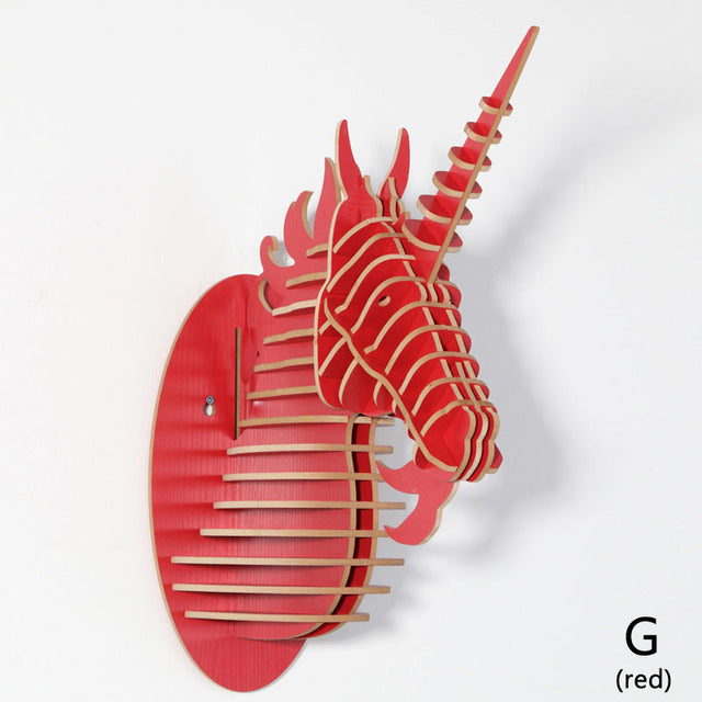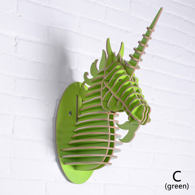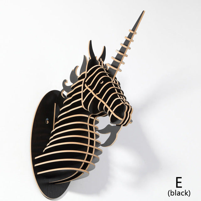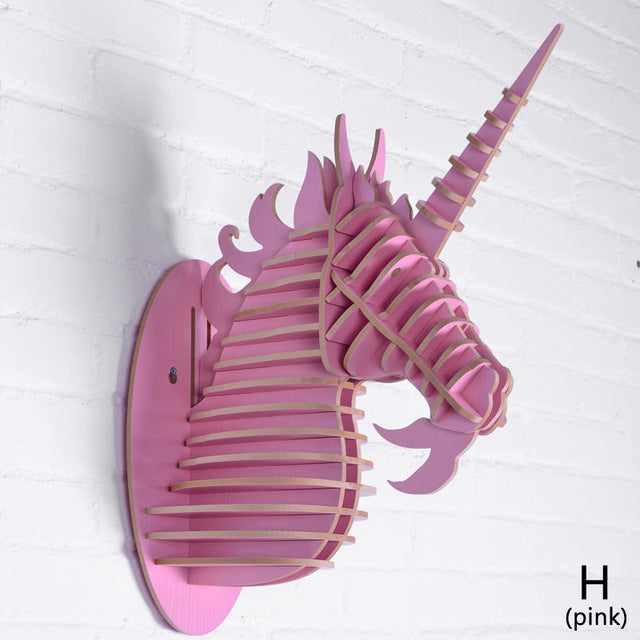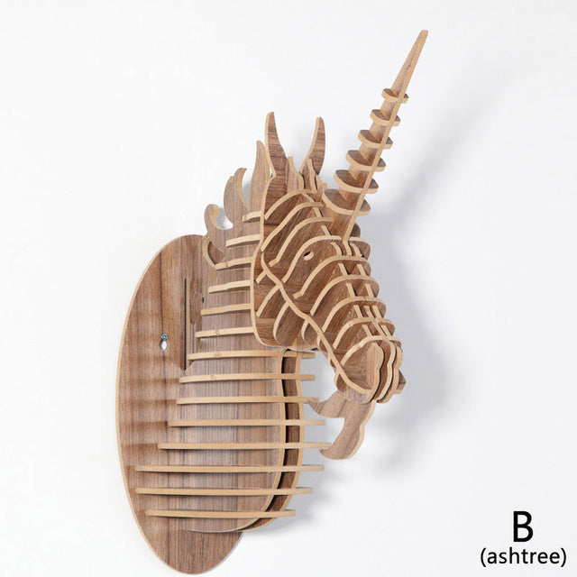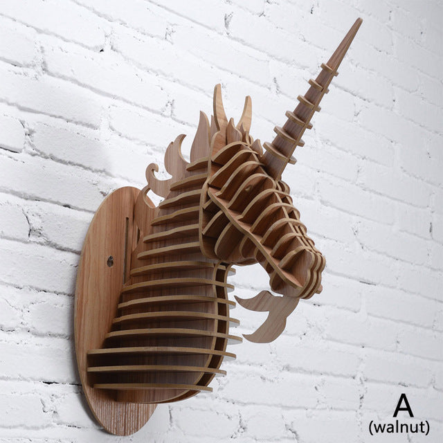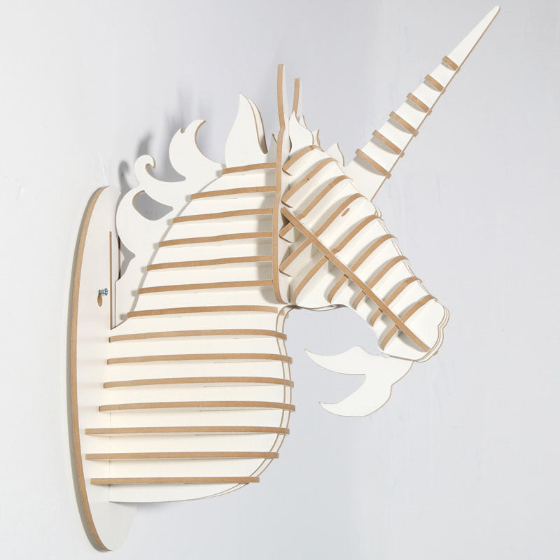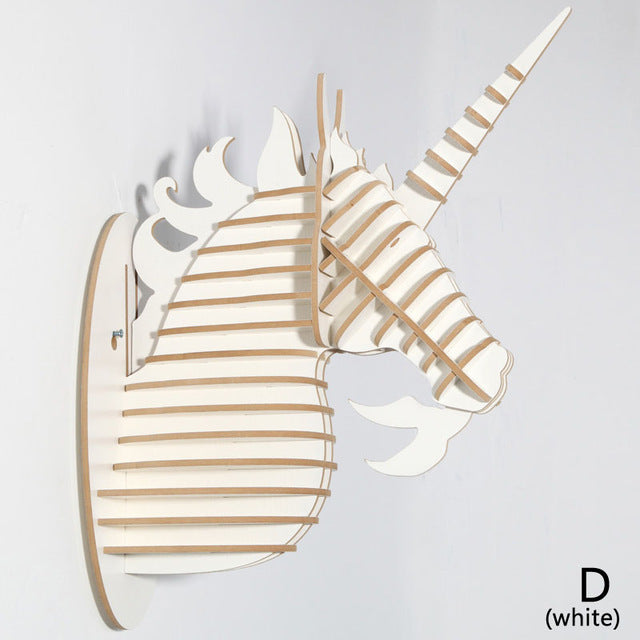 Wood Unicorn Fairy Tale Animal Head White Unicorn In Myth Bible Wood Furniture for Home Decoration Wall Hanging Sculpture
