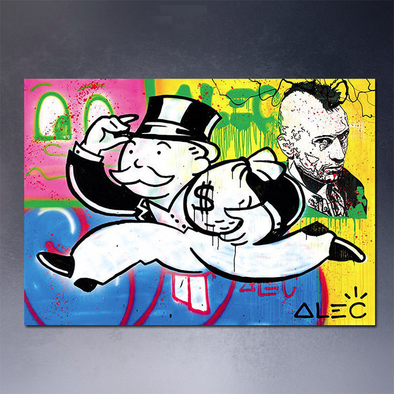 Alec monopoly Street Painting Big Graffiti Art Canvas for Wall Picture Decoration Oil Painting in Living Room handpainted 60*90