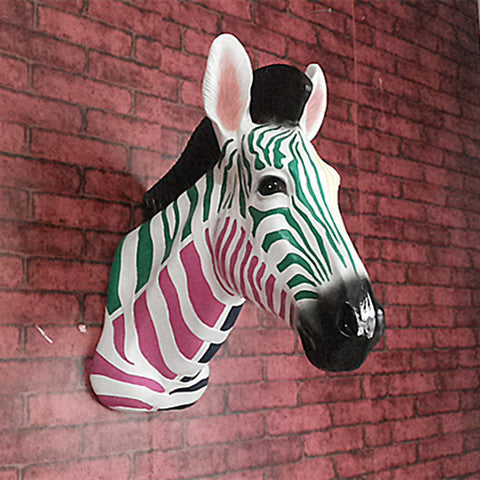 American Country Style Creative Animals Resin Sculpture Zebra Head Wall hanging for Bar Club Shop Open Wall Soft Decorations