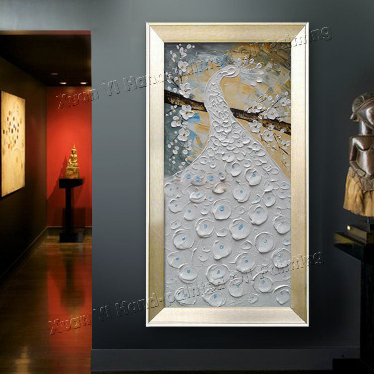Hand Painted Large Abstract Oil Painting Peacock Palette Knife Painting Canvas Art Wall Picture Modern Home Decoration(No Frame)