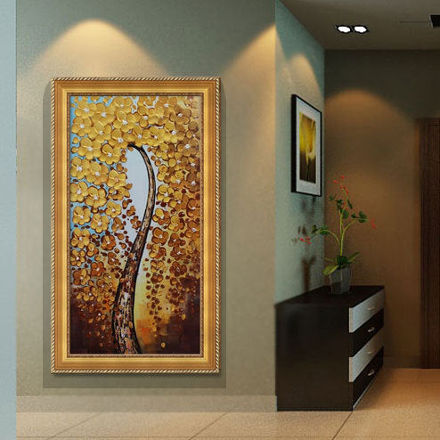 Handpainted Canvas Wall Art Abstract Painting Modern Flowers Money Tree Palette Knife Oil Painting Home Decoration (No Frame)