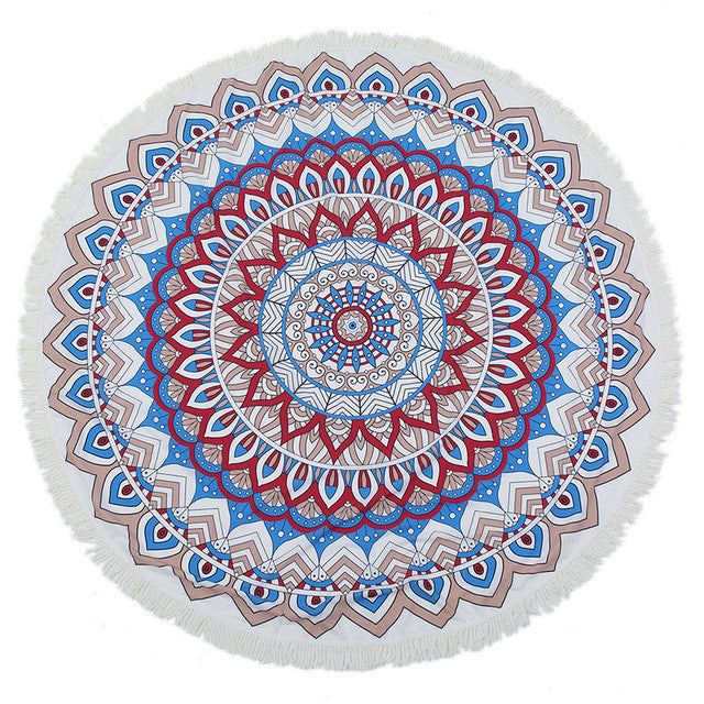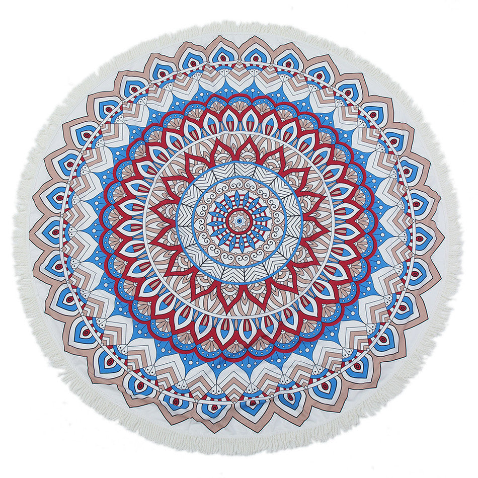 Red leaf Blue Round Mandala Beach Towel Tassel Fringing Beach Throw Round Mat Table Cloth Wall Tapestries Polyester 150x150cm