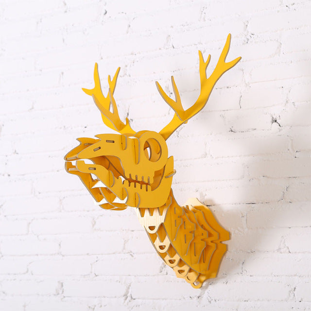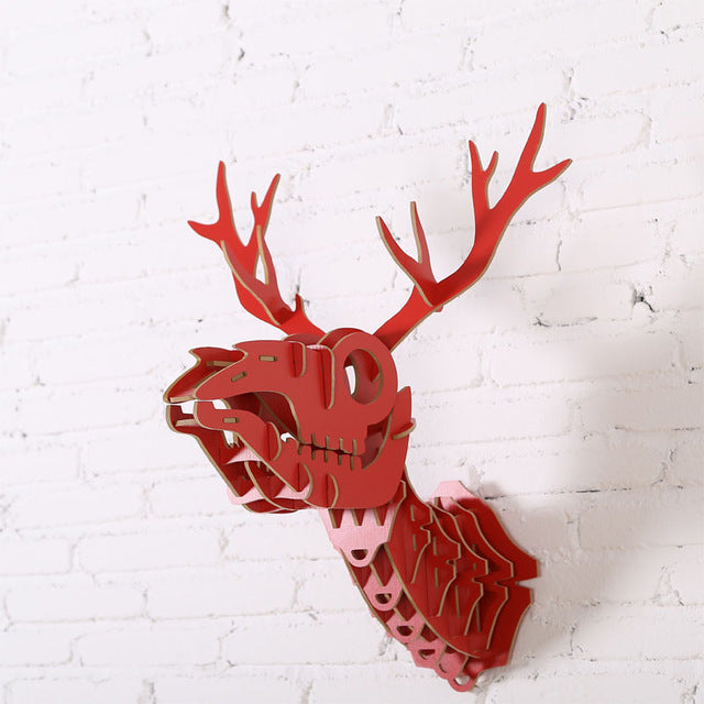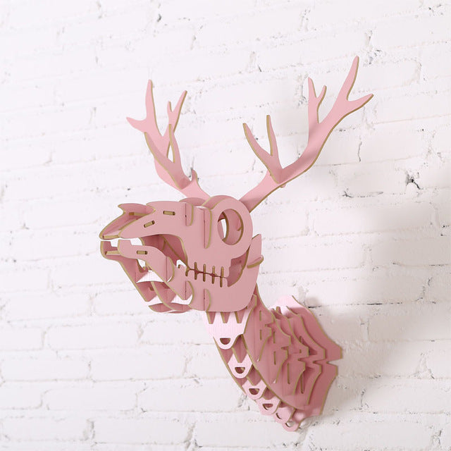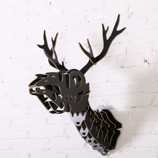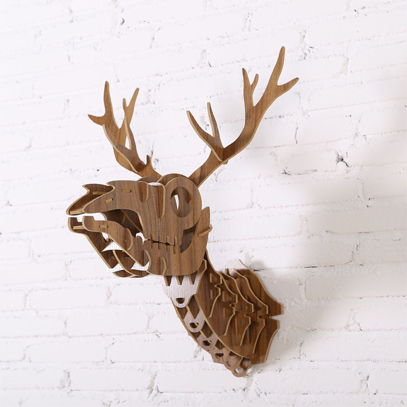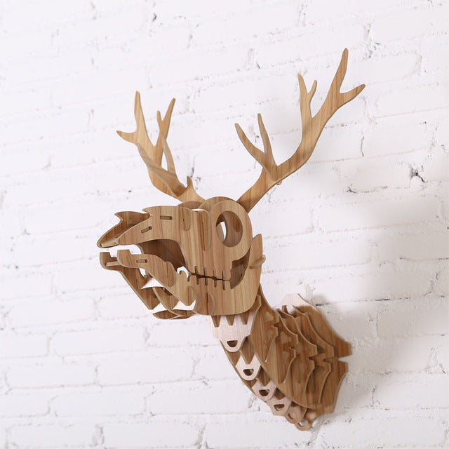 Wood Deer Skeleton Wall Hanging Animal Head Animal Wooden Sculpture Art Gift WDM019M